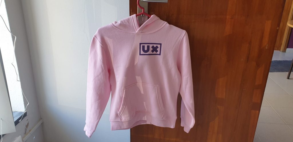Abaixo seguem imagens das sweats rosa e vermelha. A bege ainda não está disponível – assim que possível adicionaremos mais fotografias!
